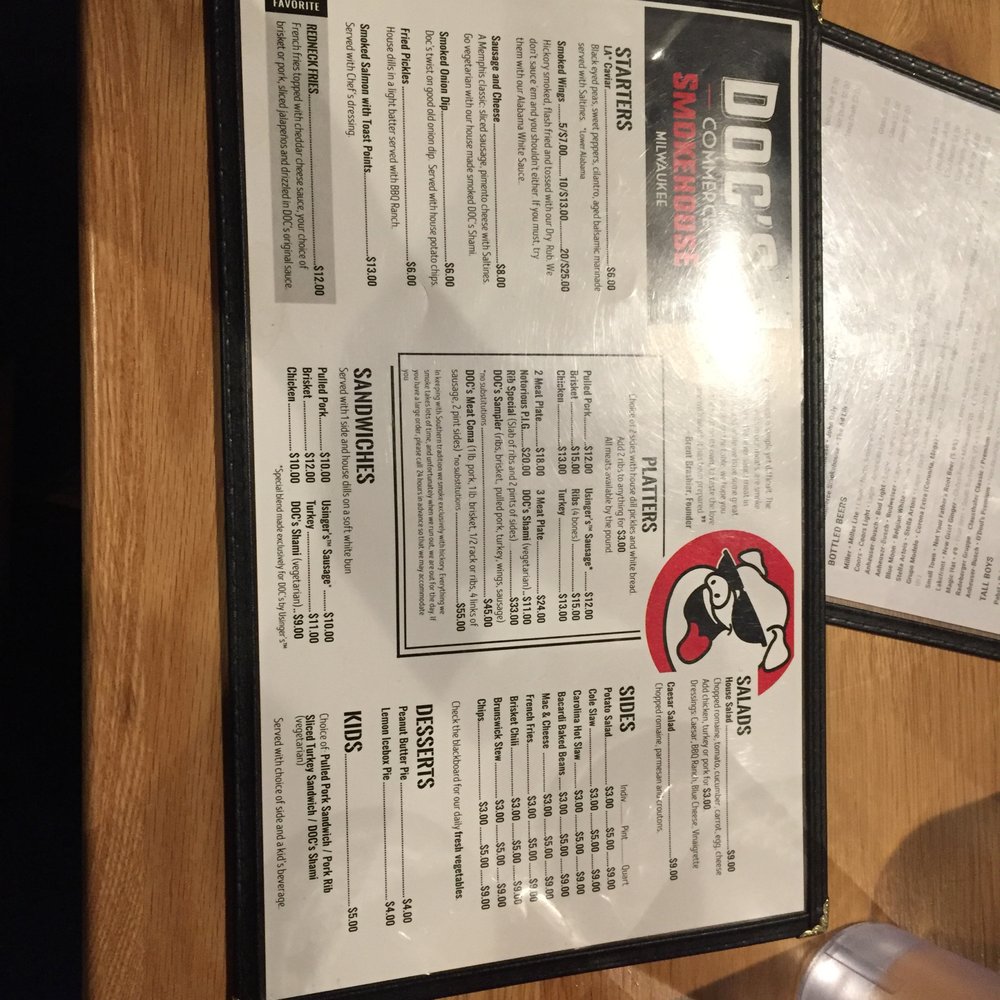 Located in the heart of Milwaukee, DOC's Commerce Smokehouse offers a flavorful escape into the world of barbecue. Their menu is a celebration of smoke-kissed meats, featuring tender brisket, juicy pulled pork, and signature chicken wings. Each dish is masterfully crafted, ensuring that every bite bursts with rich flavor.